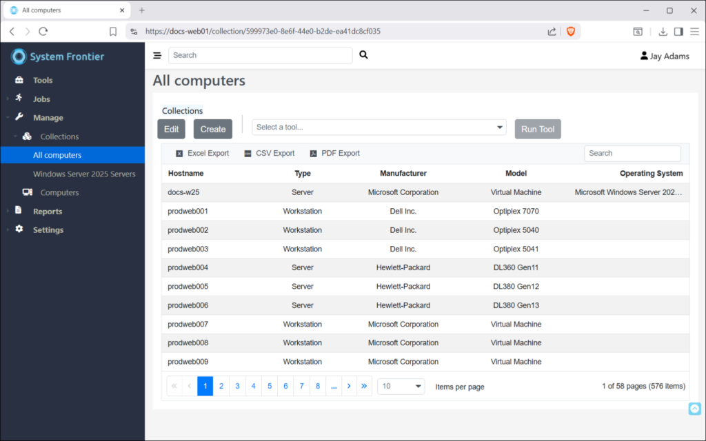 The computer object, by way of the Type field, in System Frontier is used for servers, workstations, mobile devices, switches, routers and firewalls. Currently, the bult-in tools for remote management target Windows servers and workstations, but any operating system or device can be managed with the use of custom tools.