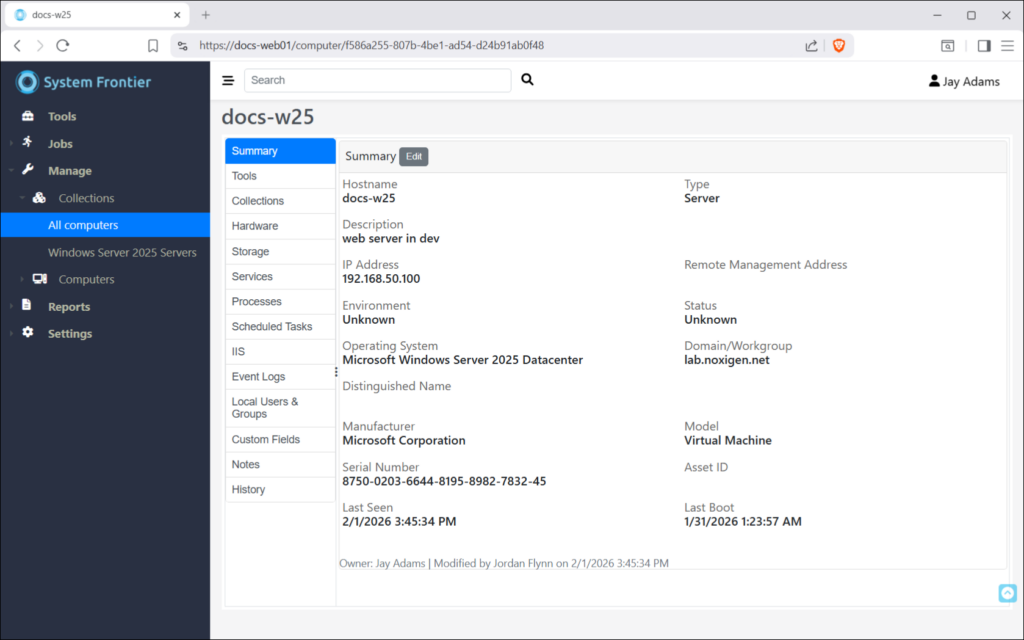 This is the primary way you manage computers interactively through the web interface. There are a series of tabs on the left that group each area of management. A user will only see tabs they’ve been give access to, based on RBAC policies.