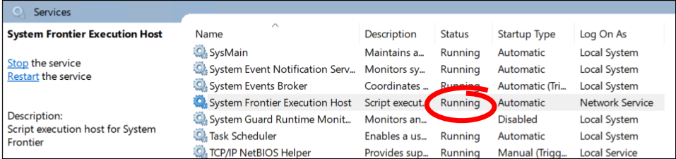 Once the execution host setup has completed successfully, the System Frontier Execution Host service should be running and listening on the configured port.